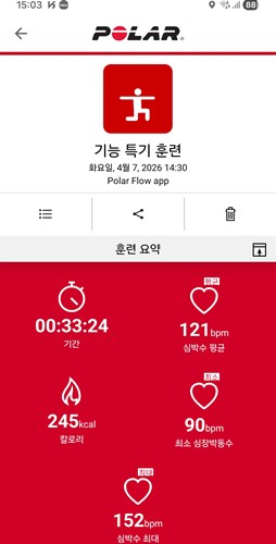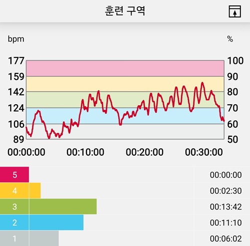 ※ 심박계 연동이 중간에 이유 없이 끊어져서 운동시간이 짧게 잡혔다.